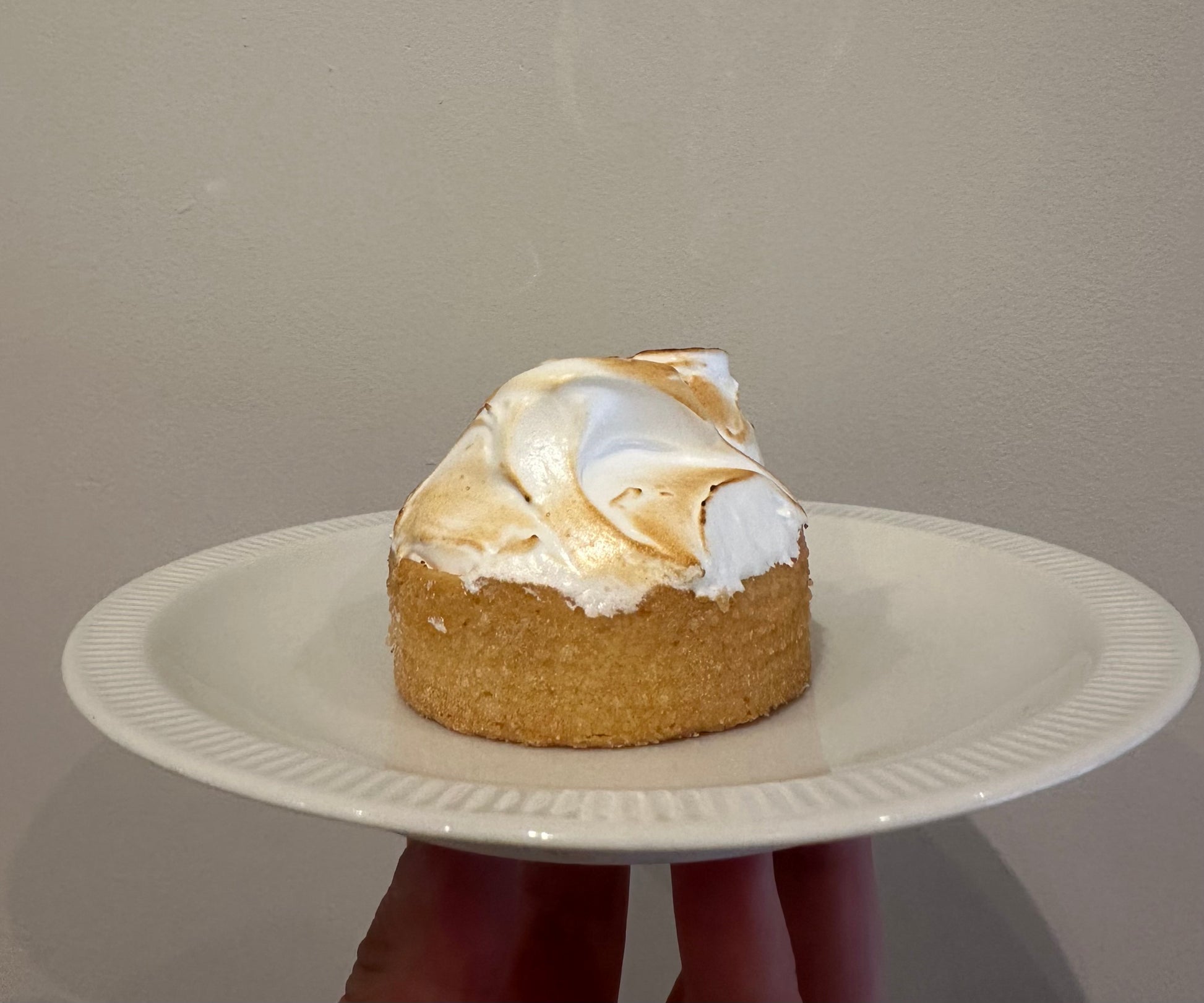 Een krokante bodem van zanddeeg met lemoncurd en een dikke laag Italiaanse meringue